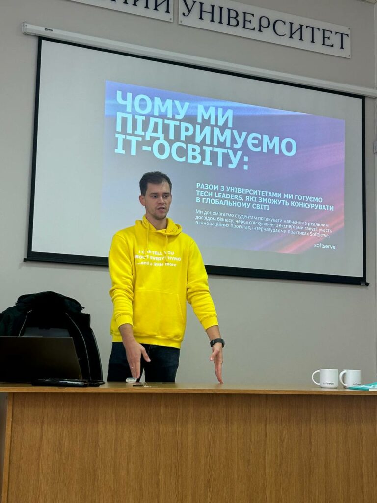 28 жовтня 2025 року за ініціативи декана ФІТ ХНУ Тетяни Говорущенко відбулось знайомство здобувачів 1 і 2 курсу різних освітніх програм факультету інформаційних технологій із діяльністю компанії SoftServe Ukraine.