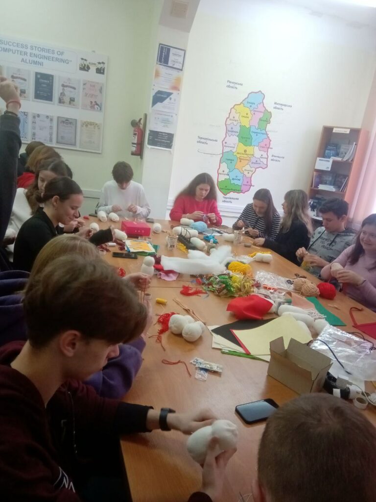 20 листопада 2024 року для студентів та аспірантів кафедри комп’ютерної інженерії та інформаційних систем, які брали активну участь у 2-річному міжнародному проєкті NAWA Green Transition in Ukrainian Universities, був проведений майстер-клас з виготовлення ялинкових прикрас, який став і своєрідною арт-терапією, і еко-ініцативою, і черговою сходинкою до забезпечення цілей сталого розвитку шляхом навчання раціонального споживання та грамотного поводження із текстильними відходами, оскільки саме з відходів та простих підручних матеріалів і виготовлялись чудові ялинкові прикраси!