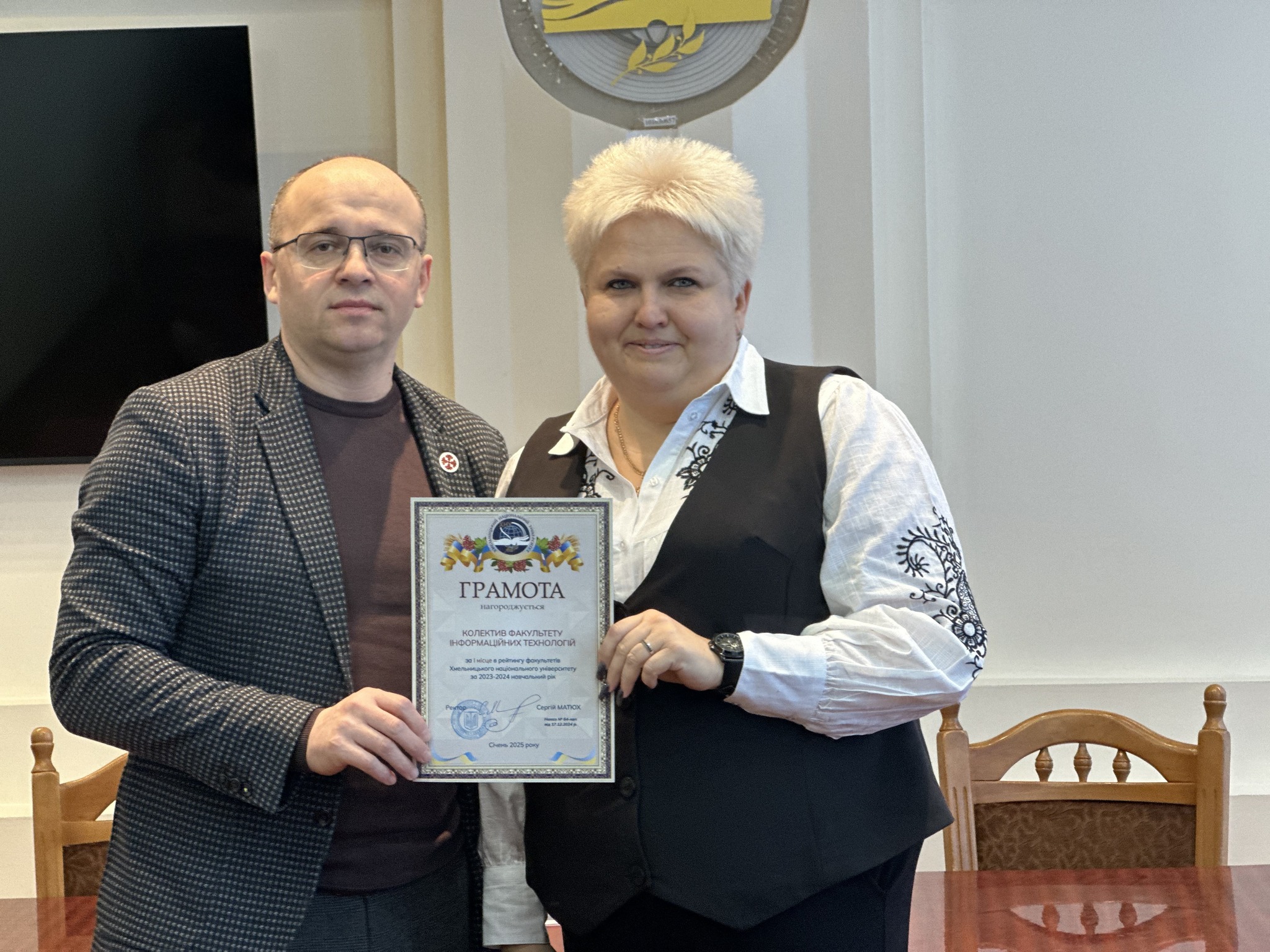 Декан ФІТ Тетяна Говорущенко здобула Грамоту для колективу Факультету інформаційних технологій за І місце в рейтингу факультетів ХНУ, і була вручена ректором ХНУ Сергієм Матюхом на ректораті.Read More