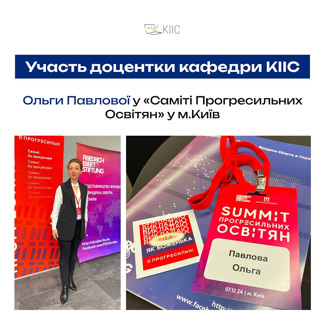 В.о. завідувачки кафедри КІІС Ольга Павлова взяла участь у Summit ГО «Прогресильні» 2024, організованому у співпраці з фондом імені Ф. Еберта. Захід відбувся 7-8 грудня у м. Київ. Summit став підсумковим заходом діяльності ГО «Прогресильні» у 2024 році. Він зібрав освітян, здобувачів вищої освіти, науковців...Read More
