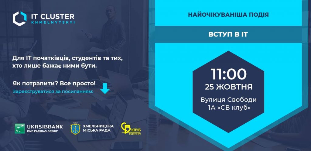 До уваги студентів 1-3 курсів спеціальності “Комп’ютерна інженерія”!!! 25 жовтня 2018 року в клубі “СВ” з 11.00 до 15.00 відбудеться подія “ВСТУП в ІТ, подія для студентів та початківців у сфері ІТ” Запрошуються всі студенти! Обов’язковою є реєстрація за посиланням.Read More