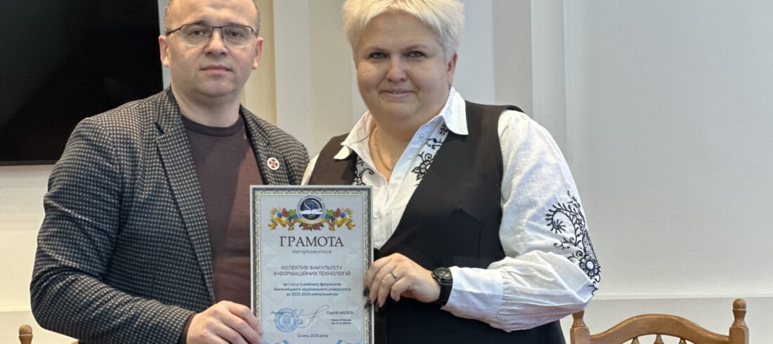 Декан ФІТ Тетяна Говорущенко здобула Грамоту для колективу Факультету інформаційних технологій за І місце в рейтингу факультетів ХНУ, і була вручена ректором ХНУ Сергієм Матюхом на ректораті.Read More