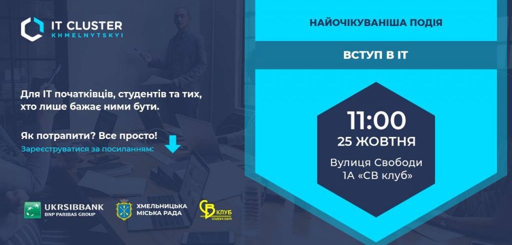 До уваги студентів 1-3 курсів спеціальності “Комп’ютерна інженерія”!!! 25 жовтня 2018 року в клубі “СВ” з 11.00 до 15.00 відбудеться подія “ВСТУП в ІТ, подія для студентів та початківців у сфері ІТ” Запрошуються всі студенти! Обов’язковою є реєстрація за посиланням.Read More
