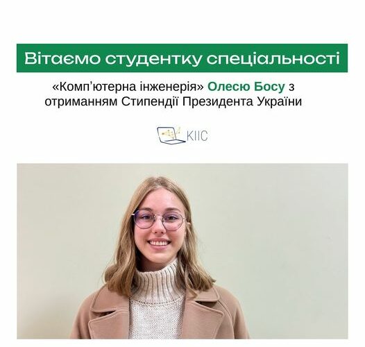 Вітаємо нашу студентку 3 курсу спеціальності «Компʼютерна інженерія» Олесю Босу з отриманням Стипендії Президента України! Пишаємось нашими студентами, а Олесі бажаємо наснаги та подальших успіхів у навчанні.Дізнатися більше