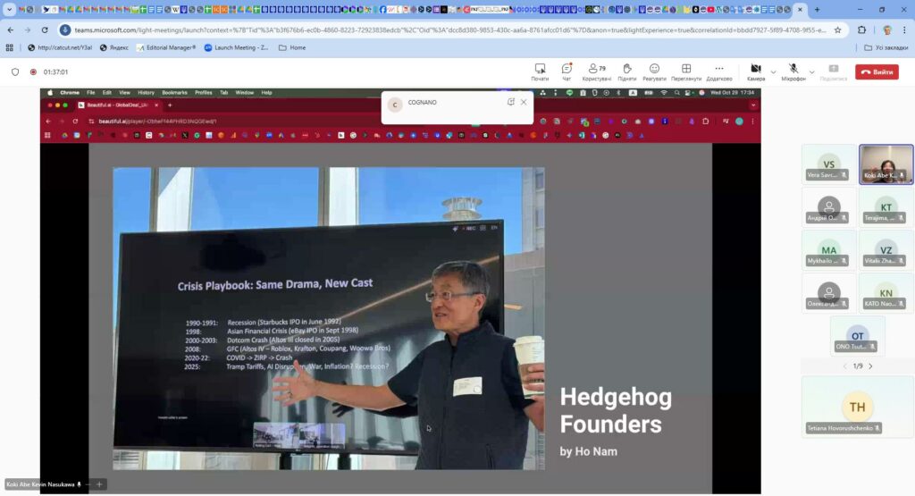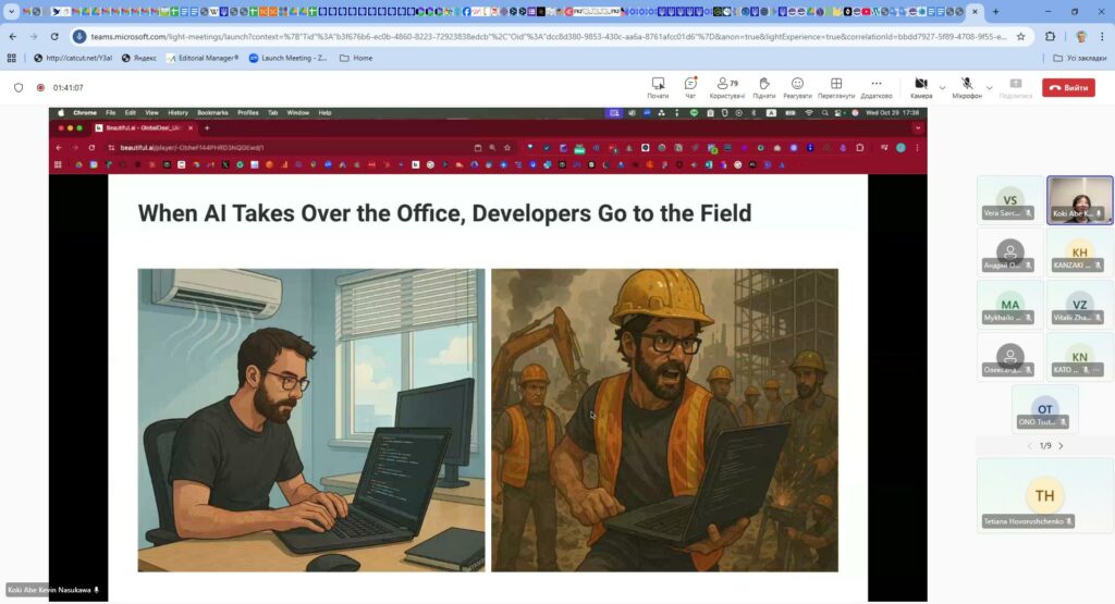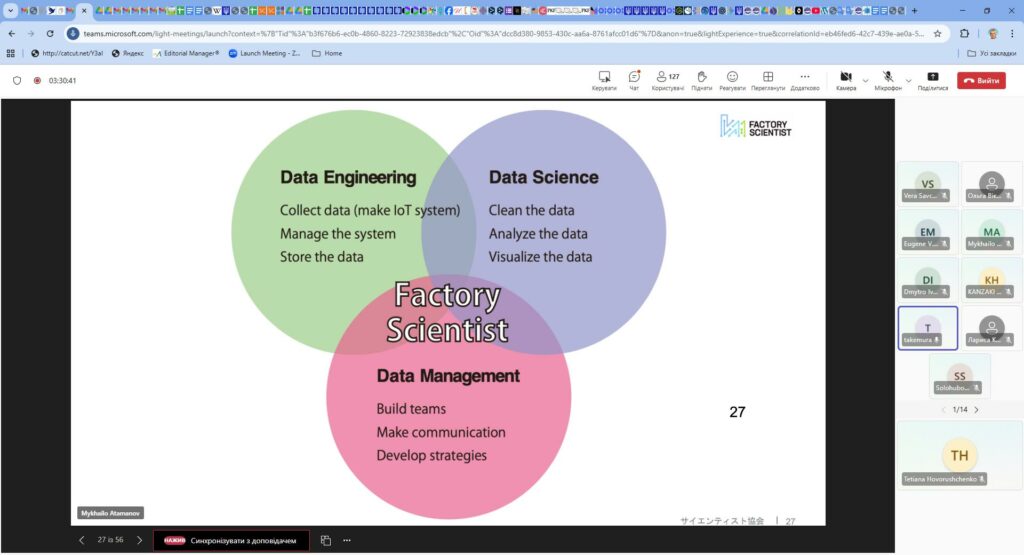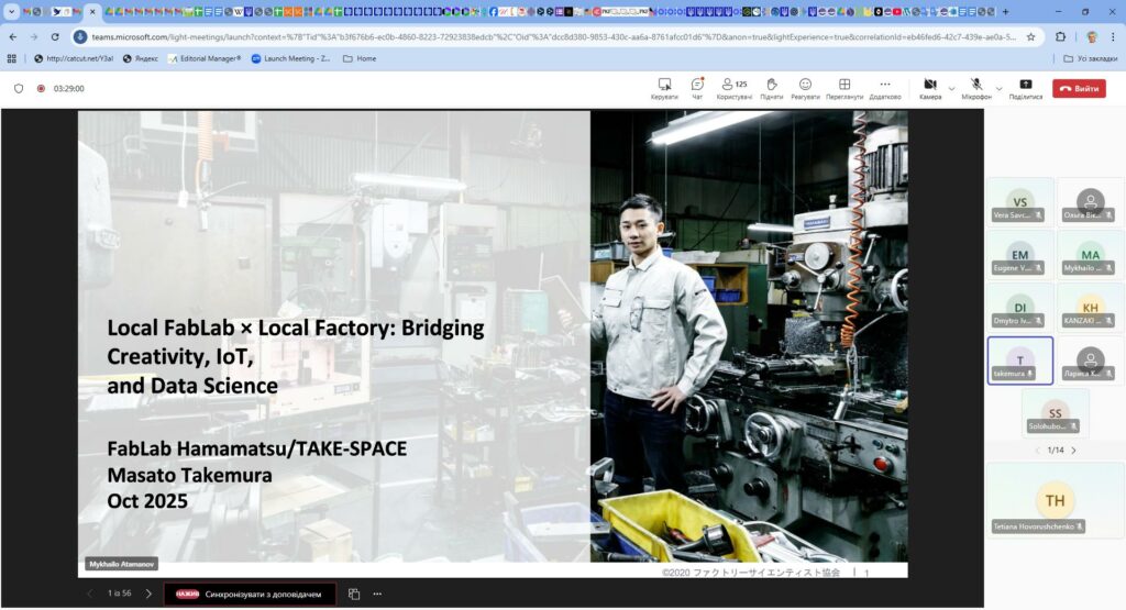 28-29 жовтня 2025 року Японська агенція міжнародного співробітництва за підтримки BDO Ukraine та Міністерства освіти і науки України провела два вебінари на тему: “Новітні ІТ-технології та їхні промислові застосування – на шляху до міжнародного співробітництва з українськими ІТ-фахівцями”, участь у яких взяли проректор з науково-педагогічної роботи Катерина Скиба, декан ФІТ ХНУ Тетяна Говорущенко, заступник декана ФІТ ХНУ з міжнародної та наукової роботи Сергій Лисенко та здобувачі різних освітніх програм факультету інформаційних технологій ХНУ