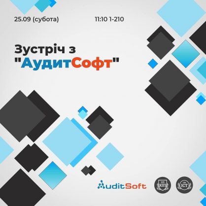 Запрошуємо студентів 3 і 4 курсів навчання, а також студентів скороченої форми навчання 2 і 3 курсів на зустріч із консалтинговою ІТ-компанією «Аудитсофт»